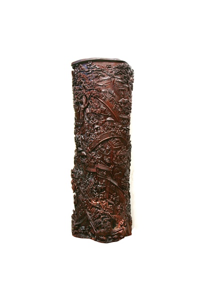 根雕,是以树根(包括树身、树瘤、竹根等)的自生形态及畸变形态为艺术创作对象,通过构思立意、艺术加工及工艺处理,创作出人物、动物、器物等艺术形象作品。根雕艺术是发现自然美而又显示创造性加工的造型艺术,所谓“三分人工,七分天成”,就是说在根雕创作中,大部分应利用根材的天然形态来表现艺术形象,少部分进行人工处理修饰,因此,根雕又被称为“根的艺术”或“根艺”。